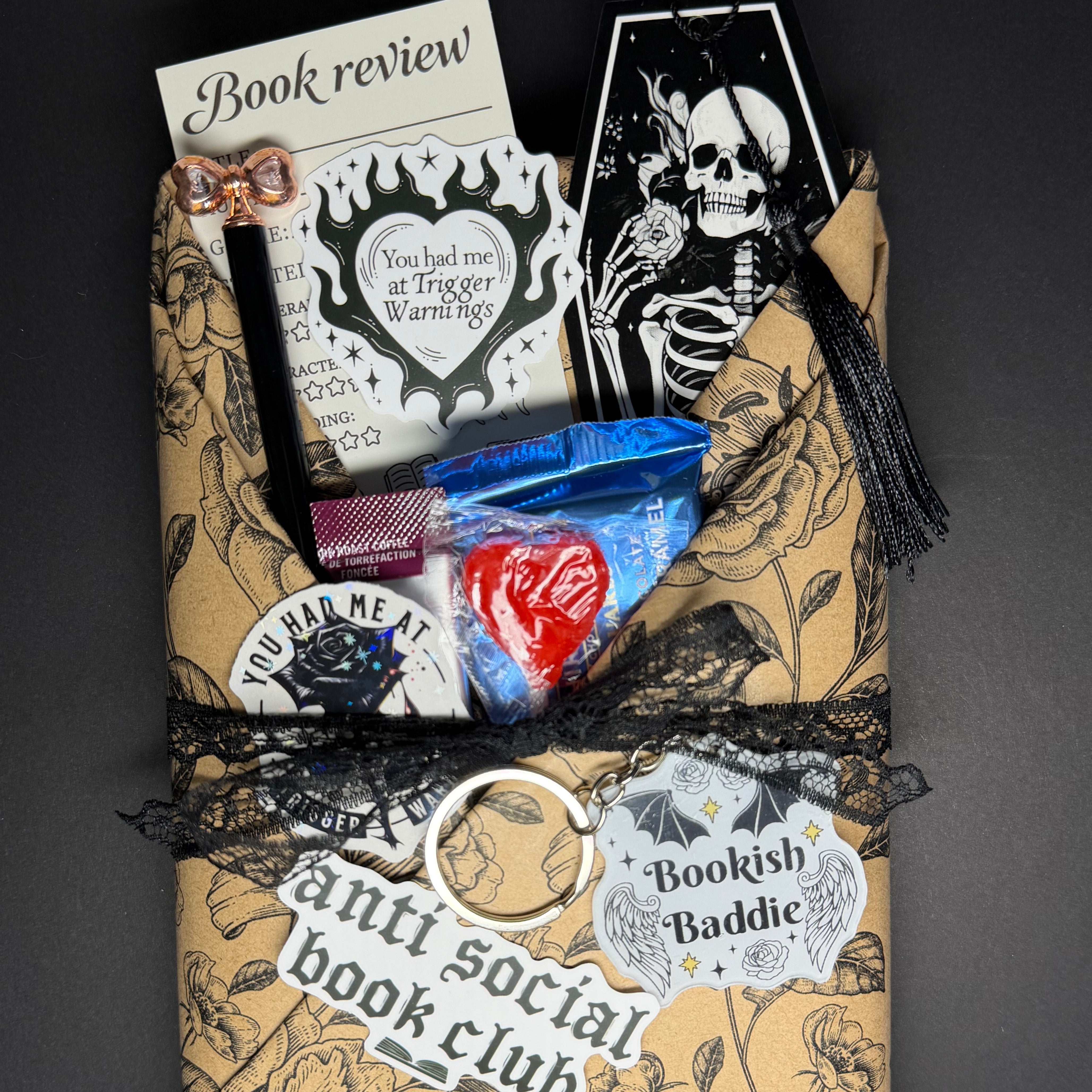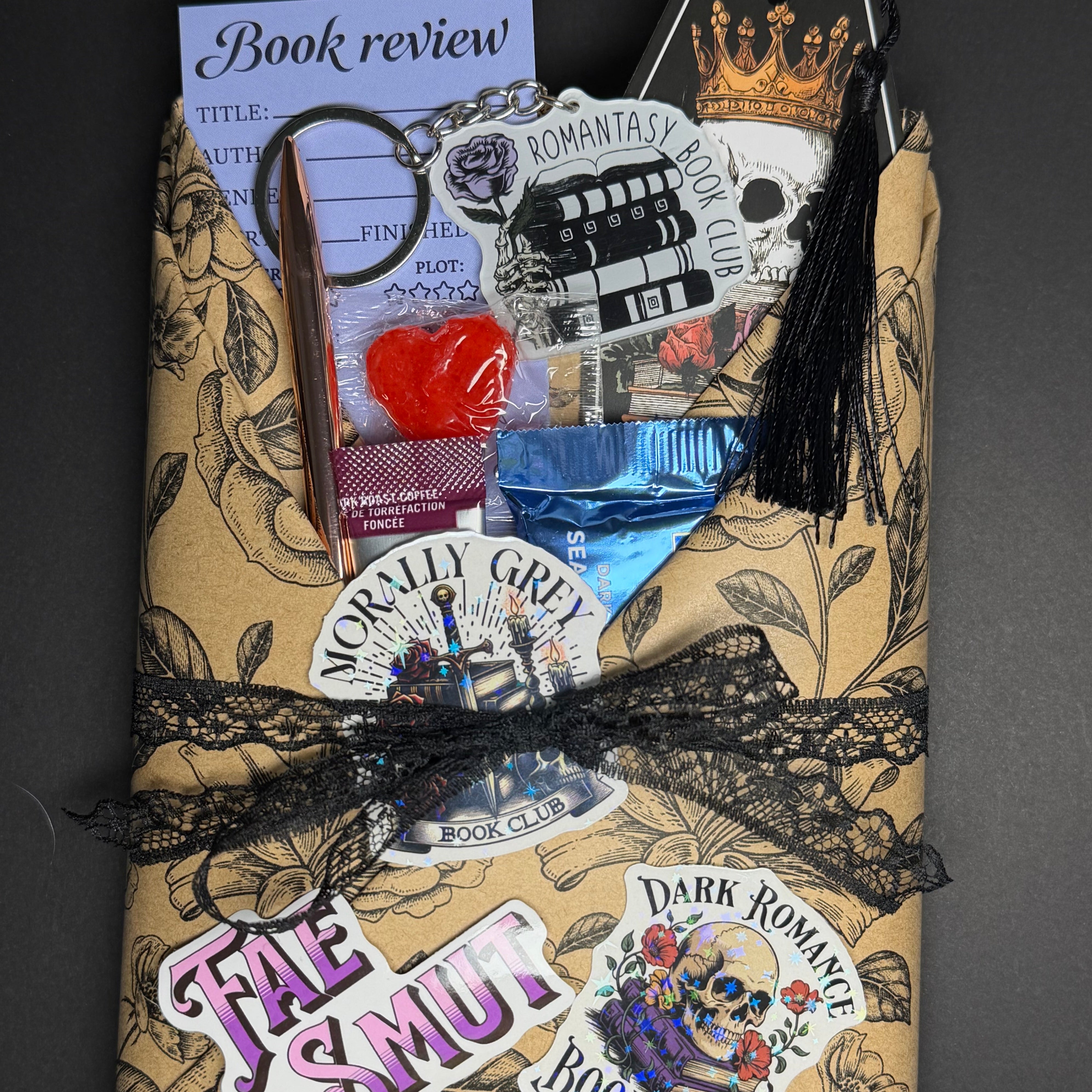 From the leading dark romance book box service, receive expertly curated dark & spicy reads plus bookish accessories, goodies, and gift wrap (see "what's included" slide for full list of merch).