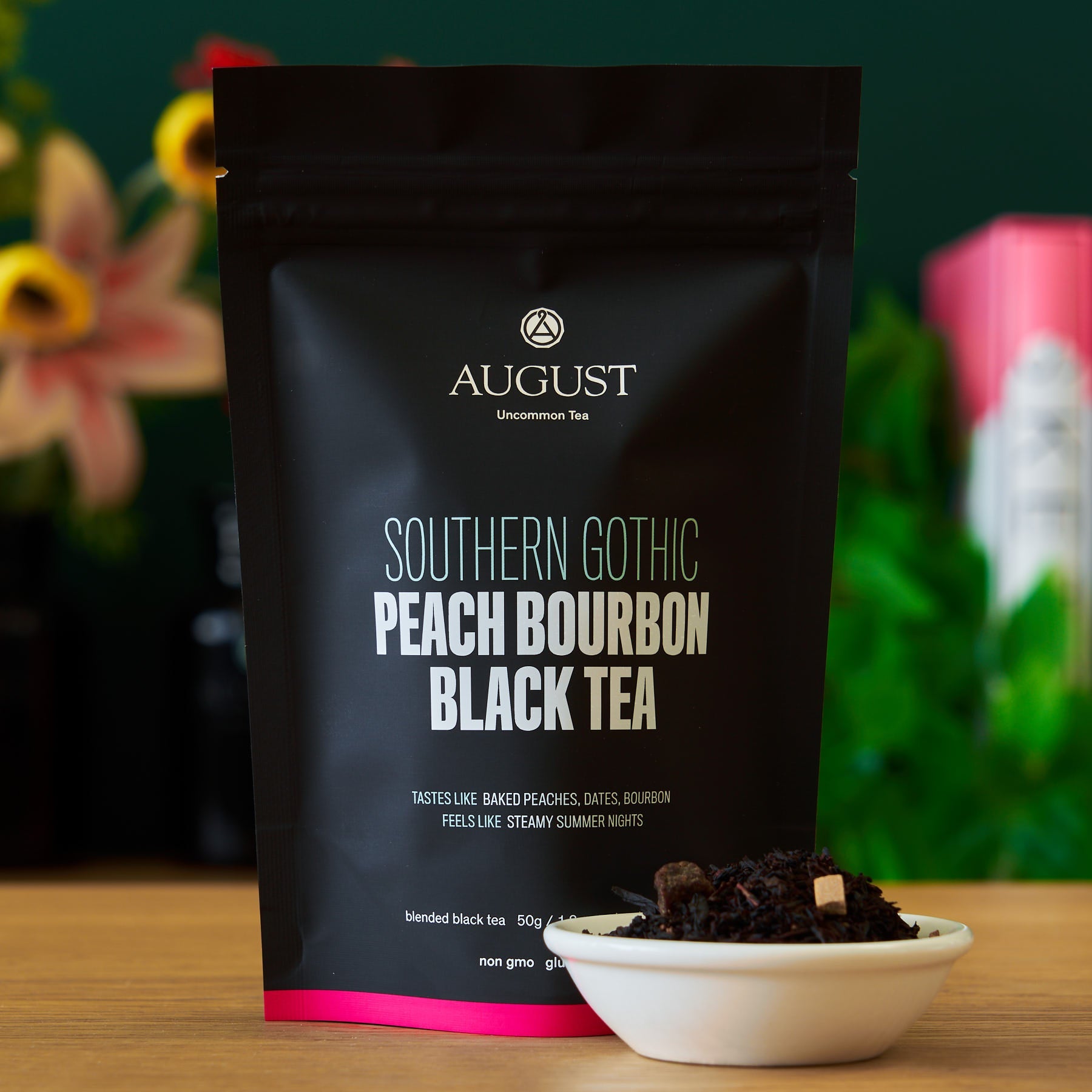 The first sip greets you with rich peach caramel aroma. This tea has a light caramelized fruit flavor in a strong, malty black tea with just a touch of bourbon. Each sip has a soft peachy finish. Milk enhances the sweetness and mellows the tannins. Sugar amplifies the peach flavor to make a luscious peach tea. It’s reminiscent of a warm buckwheat peach cobbler with fresh whipped cream. This tea makes an unforgettable iced tea.